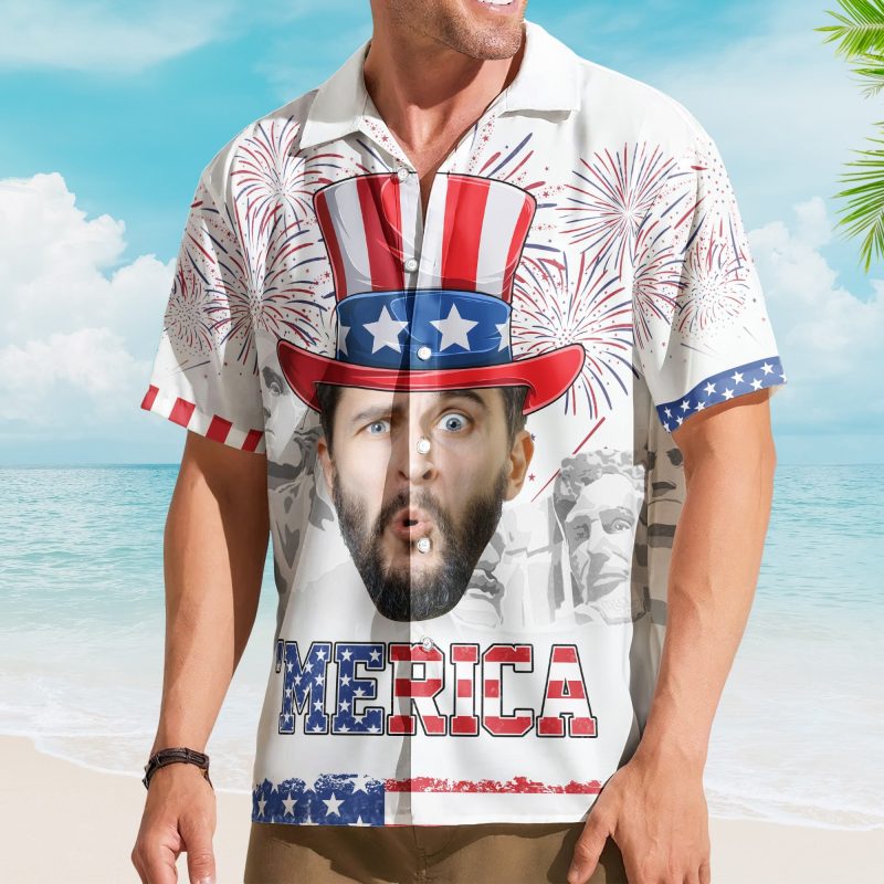 Custom Face Funny Happy 4th Of July – Personalized Photo Hawaiian Shirt – Independence Day Shirt