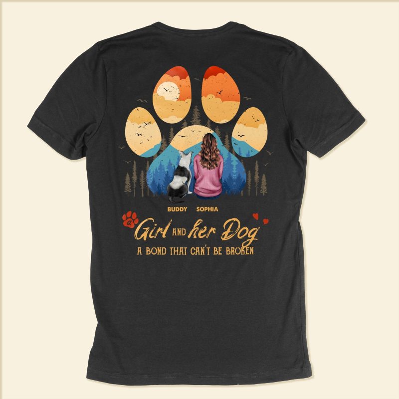 Dog & Girl – A Bond That Can’t Be Broken – Personalized Back PrintedOne Size Shirt – Birthday, Loving Gift For Dog Mom, Dog Mama, Dog Lovers