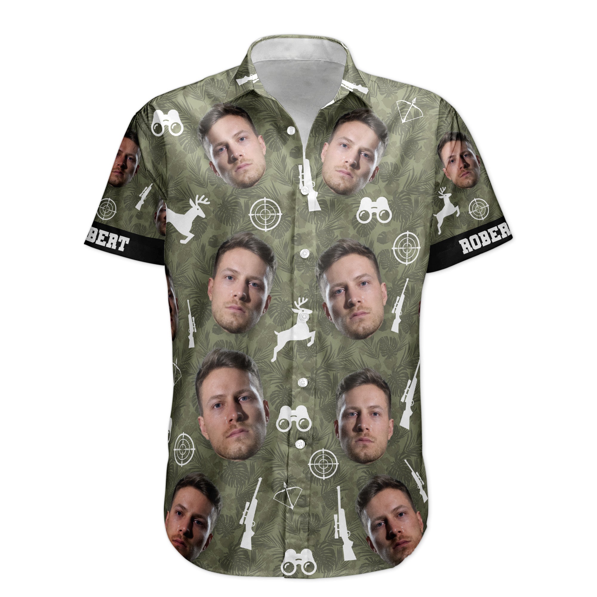 Hunting Camo Tropical Pattern Custom Face Aloha Shirts – Custom Photo Hawaiian Shirts