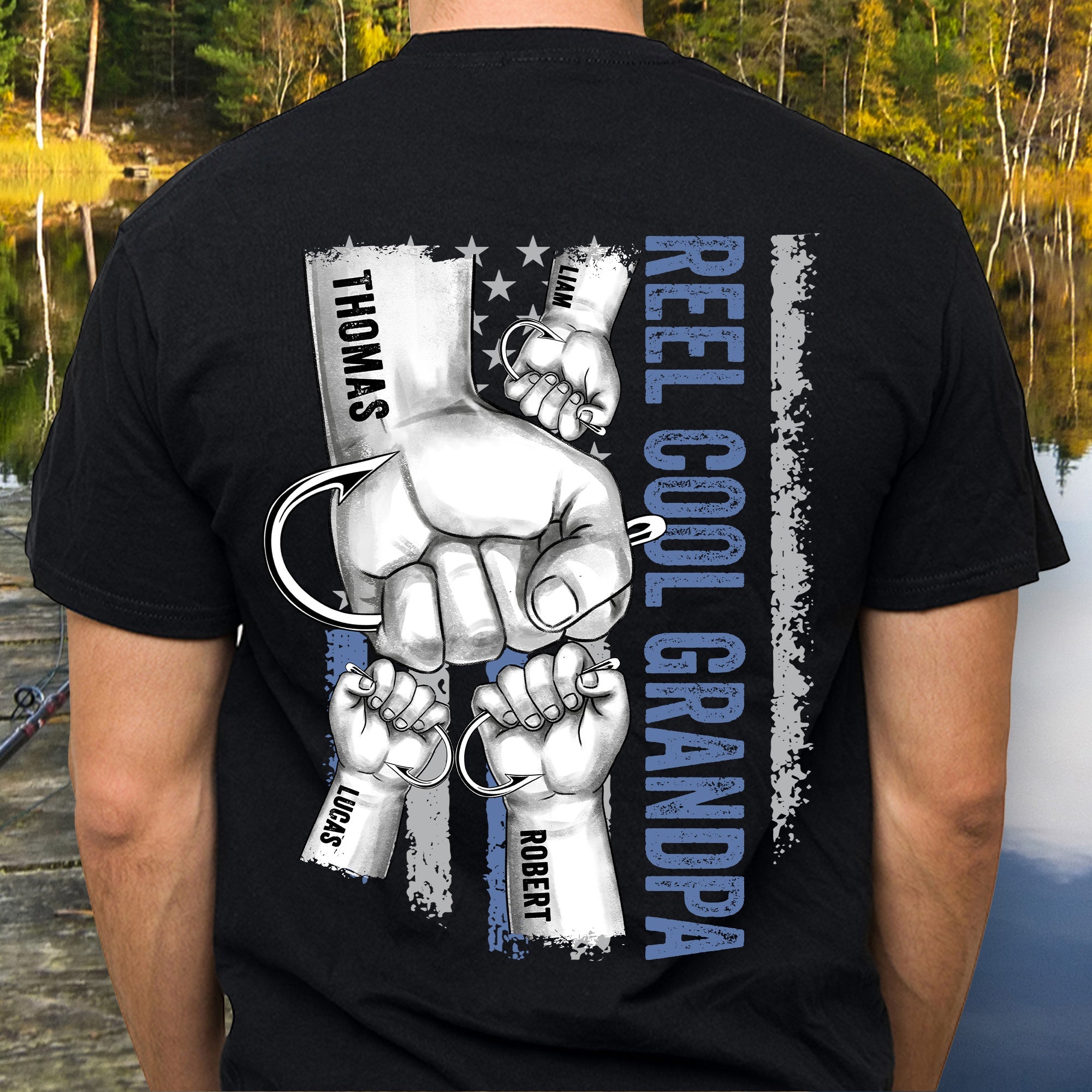 Reel Cool Papa, Grandpa – Personalized Back PrintedOne Size Shirt